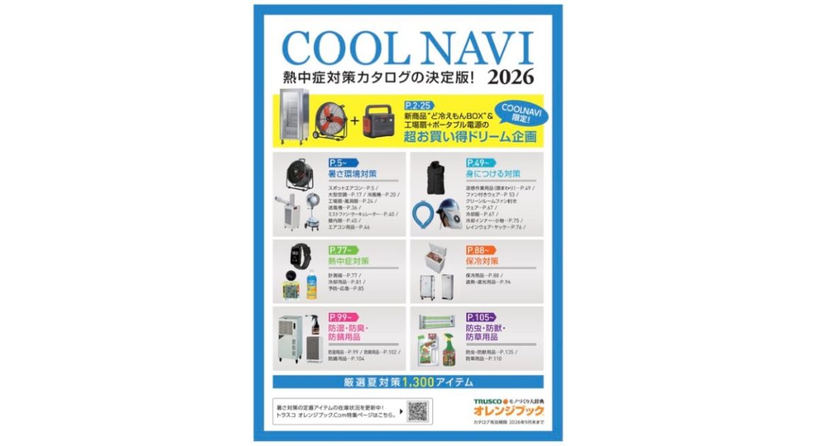 「Cool Navi」は、現場の暑さ対策に特化した商品を網羅的に掲載した専門カタログです。膨大なラインナップの中から、作業環境や用途に応じた最適な製品選定が可能であり、効率的な資材調達を強力にサポートします。